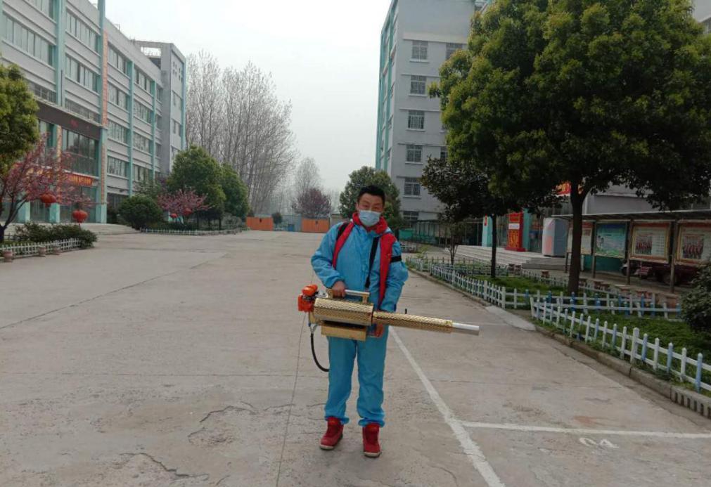 (2020年疫情期间,石奥杰正在高中母校进行环境消杀)