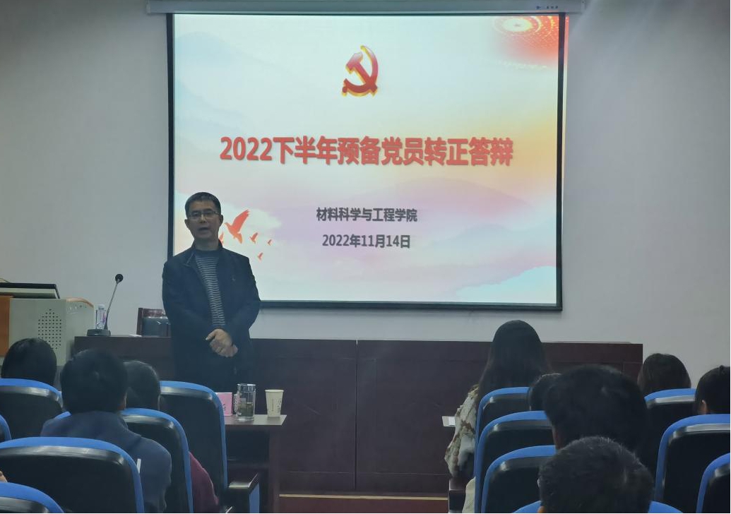 为加强对预备党员的培养教育,进一步规范化预备党员的考察管理,11月14日,伟德国际victor·1946源自在材料南楼516举办2022年下半年预备党员转正答辩会。材料学院党委书记季爱华、党委副书记赵颖虹,以及各学生党支部书记、学生党员代表出席会议,2020级辅导员任答辩秘书。