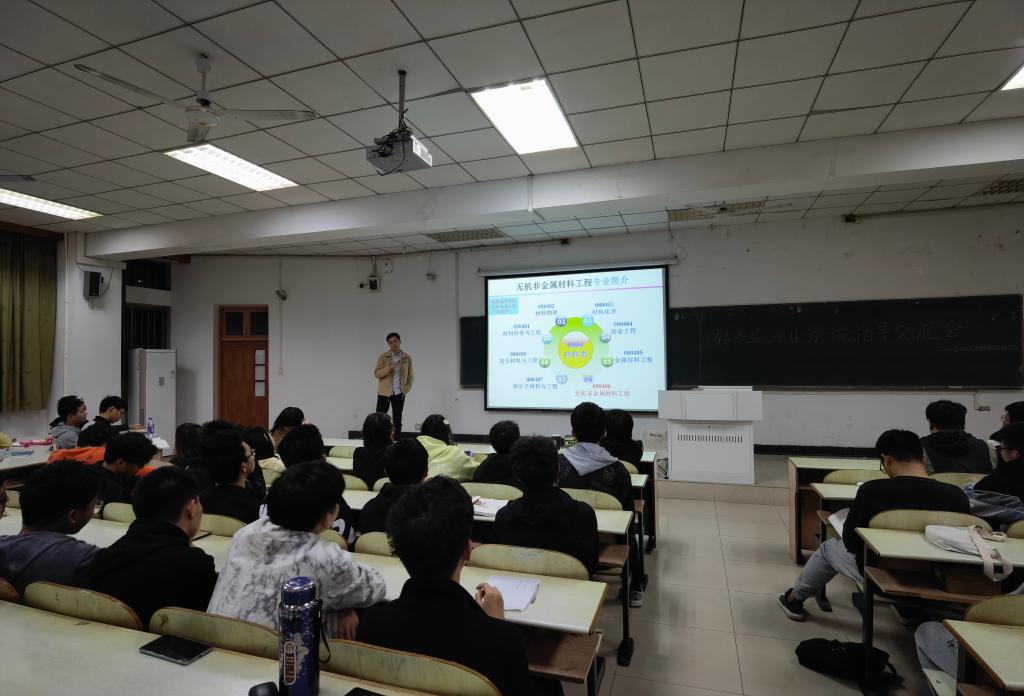 会上,包全合、马群双、刘娟和丁健翔四位系领导首先介绍了材料学院的基本概况、师资队伍、科研团队等相关信息,强调了我院过硬的教学实力和较高的科研水平;随后,四位老师分别向同学们讲述我院材料科学与工程、金属材料工程、无机非金属材料工程和焊接技术与工程等四个专业的课程设置以及涉及领域;最后,各位老师还向同学们展示了我院近几年来毕业生的升学情况、就业方向以及发展前景。